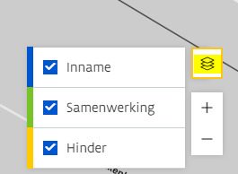 Contextdata worden standaard altijd getoond. Je kan het tonen van contextdata ook manueel uitschakelen, laag per laag, via een knopje onderaan rechts op elke kaart. Wanneer bijvoorbeeld bij het intekenen van een langdurige inname er heel veel contextdata getoond worden, kan het makkelijker zijn om tijdelijk 1 of meer lagen uit te schakelen.
