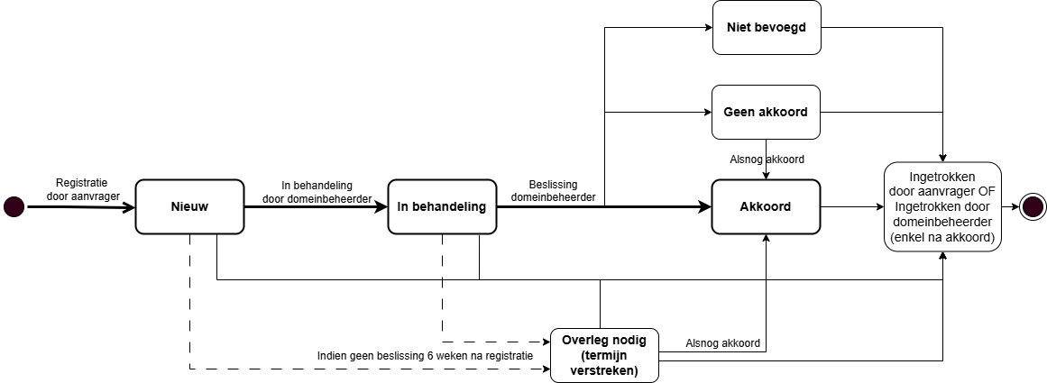 | 4 | Registreer beslissing | Na het behandelen, registreert de domeinbeheerder zijn beslissing en de nodige gegevens: