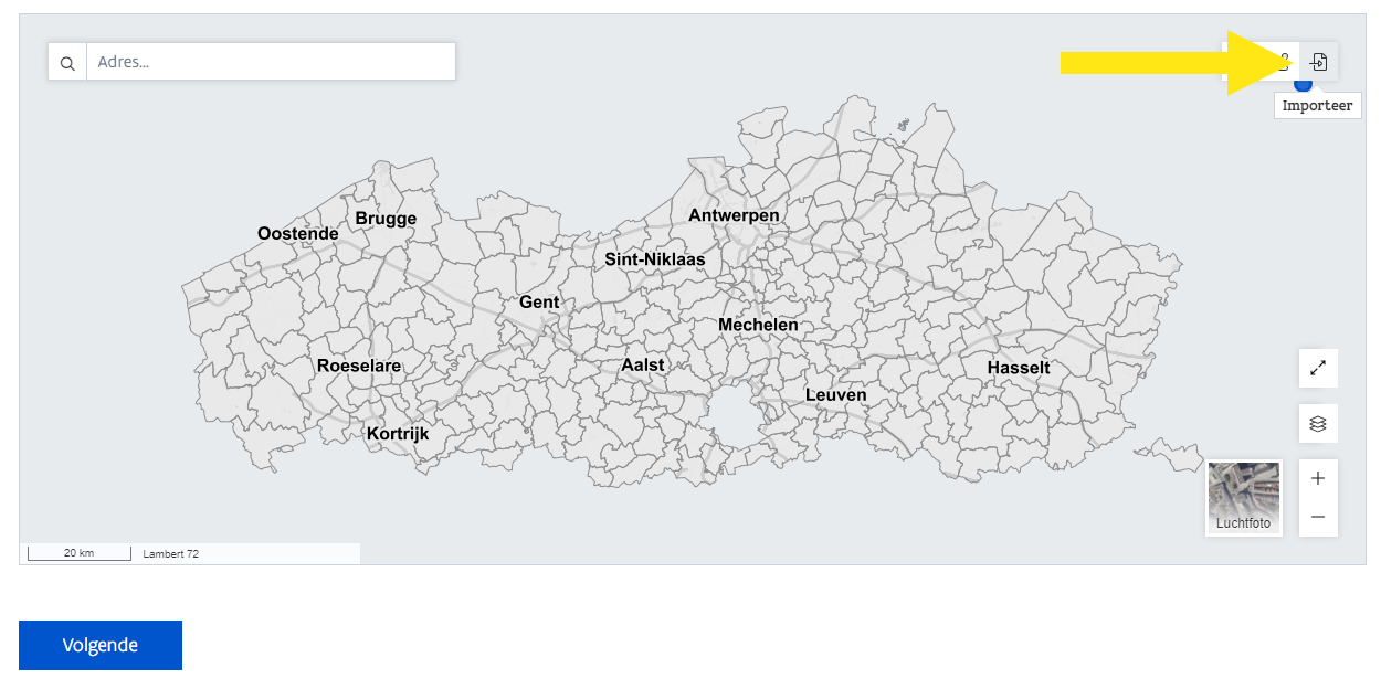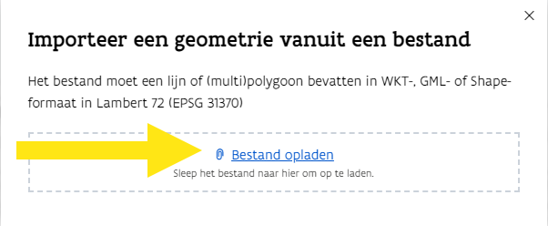 Het is mogelijk om een (multi)polygoon of geometrycollection in GML-formaat te importeren door op Importeer te klikken en vervolgens het bestand op te laden: